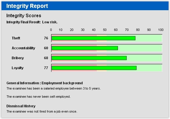 Although the reports are generated automatically (as opposed to hand written reports), the amount of information is extensive and job specific. The use of sophisticated mathematical formulae in the interpretation of the results facilitates high levels of predictive validity.